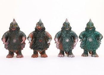 バリエーションバリエーションがないように思われがちですが、ギガスやキングジョー、ベムスターなど、仕様が違うものも多数みられます。スプレーの吹き加減が違うもの、スプレーの色が違うもの、また成型色が違うもの等いろいろなバリエーションがあります。マルサン、ブルマァクとバンダイシリーズに挟まれ、まだ探求者の少ないシリーズなので、これからこだわって調べてみるのもいいかもしれません。 |