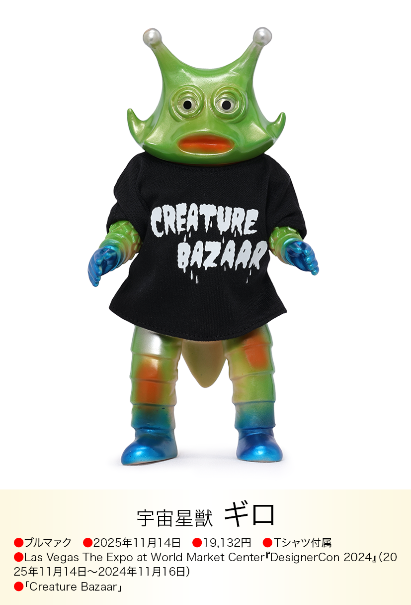 レトロタイプソフビも色々なアイデアで新しい切り口のものが発売されています。ここでは前掛けや、Tシャツを着た怪獣たちを集めてみました。資料室では、前掛けやTシャツの下に隠れた塗装も見て欲しいので外した状態で掲載しています。装着時の状態をこちらでご覧ください。