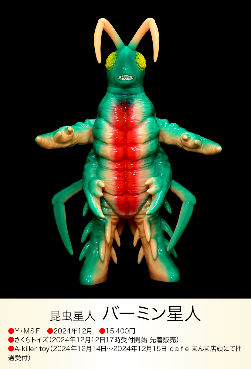 2024年11月シリーズ第一弾のアメーザから毎月コンスタントに新しいソフビを発売しているY・MSF【ウルトラソフビシリーズ】。基本サイズを23センチとし、モチーフになる怪獣の設定身長や、劇中のイメージに合わせて、それぞれ完成サイズが変化するレトロタイプソフビとしては新しい試みを取り入れ、造型もスーツのイメージをできる限りそのままレトロソフビ風に再現することにこだわり、パーツ構成をかなり細かくすることで実現した、まさに令和の時代に合わせて進化したネオ・レトロタイプソフビといえる。
