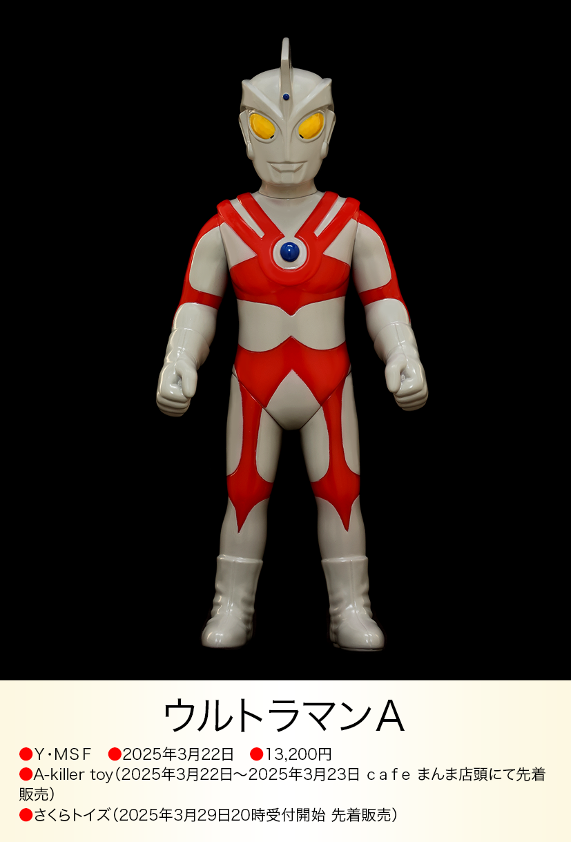 2024年11月シリーズ第一弾のアメーザから毎月コンスタントに新しいソフビを発売しているY・MSF【ウルトラソフビシリーズ】。基本サイズを23センチとし、モチーフになる怪獣の設定身長や、劇中のイメージに合わせて、それぞれ完成サイズが変化するレトロタイプソフビとしては新しい試みを取り入れ、造型もスーツのイメージをできる限りそのままレトロソフビ風に再現することにこだわり、パーツ構成をかなり細かくすることで実現した、まさに令和の時代に合わせて進化したネオ・レトロタイプソフビといえる。